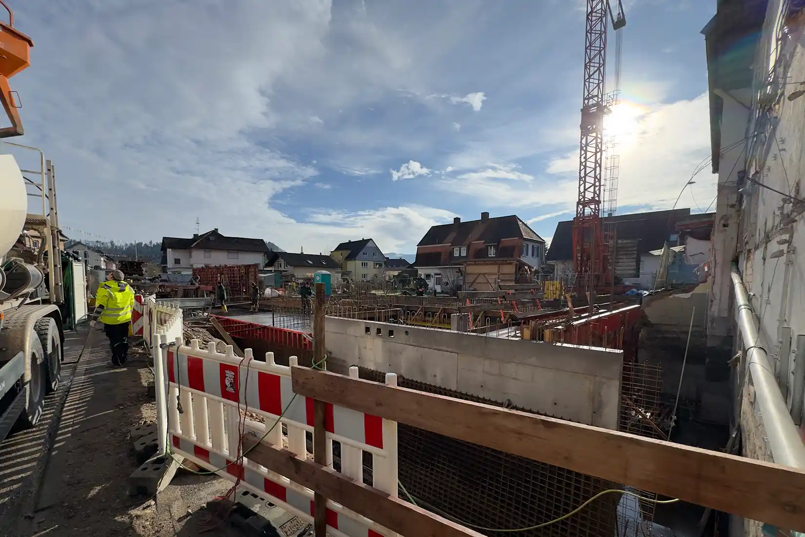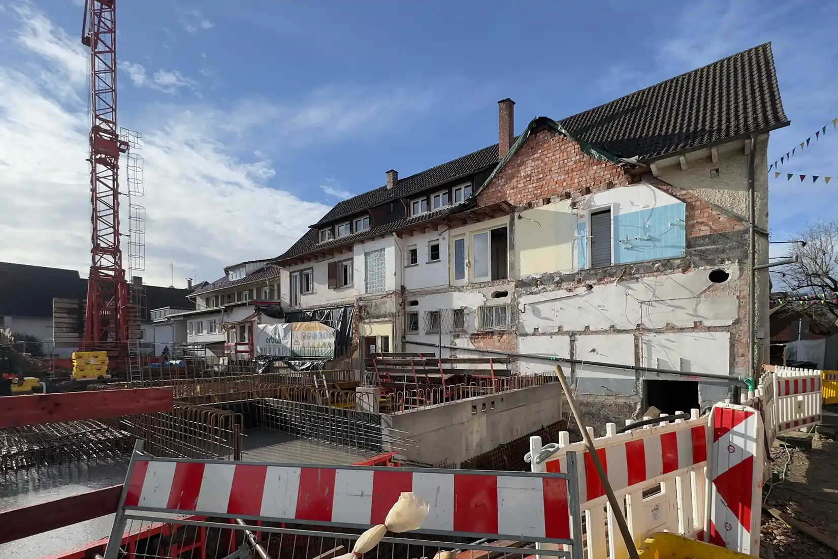 In der Ortsmitte von Biberach (Baden) schreiten die Bauarbeiten zügig voran. Mit der bereits betonierten Decke der Tiefgarage ist ein wichtiger Meilenstein erreicht. Der Neubau mit insgesamt 17 Wohnungen gewinnt zunehmend an Kontur und lässt die künftige Wohnqualität bereits erkennen.